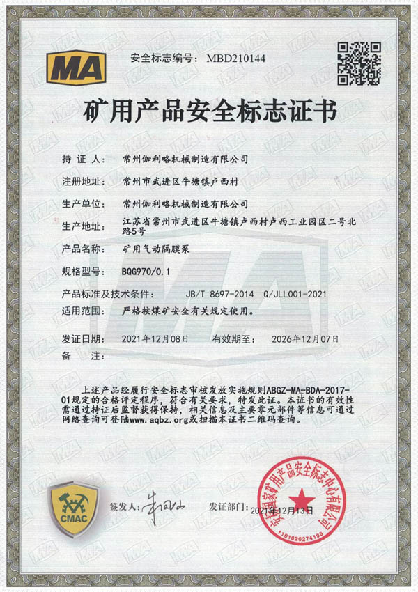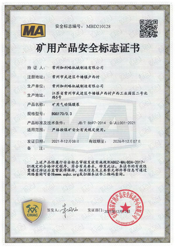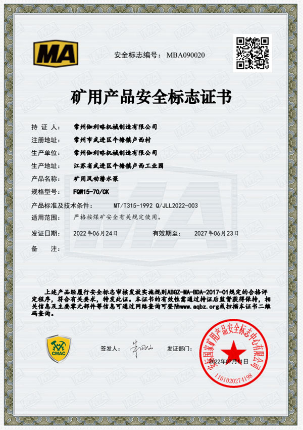 • 礦用安全標(biāo)志證書-BQG170/0.3