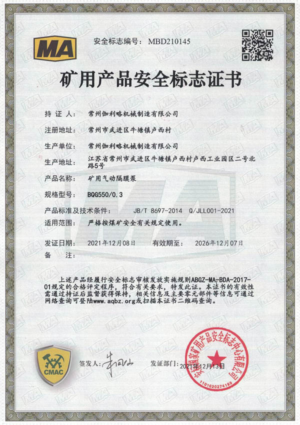 • 礦用安全標(biāo)志證書-BQG550/0.3